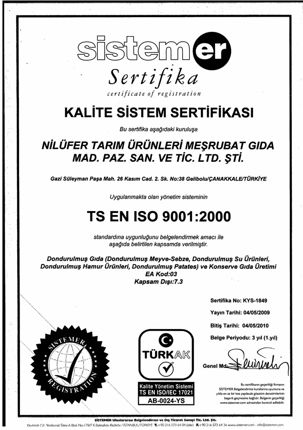 Sertifikalarımız